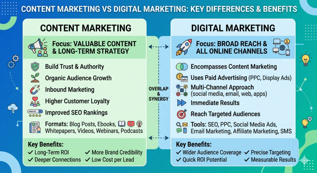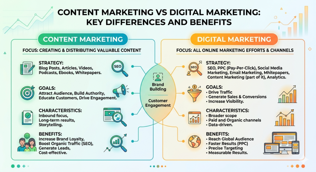 Content Marketing vs Digital Marketing: Key Differences and Benefits